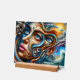 At its heart, a beautiful, stylised face emerges, adorned with piercing blue eyes that draw you into its intricate details. Swirls of vibrant colour – blues, oranges, pinks, and golds – flow outwards, creating a dynamic sense of movement and energy. Hidden within the flowing lines, subtle, almost ghostly faces and forms can be discovered, adding layers of depth and mystery.