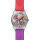 They color and design is exactly what I expected. Decent quality watch however the buckle is plastic that seems a little flimsy. They design is really cute and the colors were true to what showed online. If recommend offering a larger or oversized option since the is the design on the face and it is really quite small. It could be more of a statement pice of it was larger.