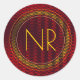 Abstract Elegant Masculine Red Yellow Monogrammed Classic Round Sticker