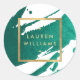 Dark, emerald green paint brushstrokes create an abstract backdrop on this personalised sticker design. Your name or business name is displayed in a faux gold box for a modern aesthetic. These stickers are great to use for sealing envelops or packages, to use for product or candle labels, or for personalising office supplies. Art and design © 1201AM Design Studio | www.1201am.com
