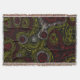 A quality printed throw has its advantages. This is a much finer weave throw than its loopier cousins, and though lighter, it is worth the investment for custom room accessorizing. The back is much prettier than the typical brown, and the fringe on the long sides very vivid, the selvage nicely done. Before photographing, I washed the throw in cold water, delicate, with a thicker woven throw the same size. On tumble dry low, this throw was dry in half the time as the other. This is a very practical quality if you use throws for furniture covers or to wrap up in frequently. The sleekness of the fabric makes it a great layer for accenting or protecting without the feeling of sitting on too much stuff. Perfect for napping or when you feel a light chill coming on. The color printing is beautiful and on this fabric, matched the design and color of my Photoshop image. This is an advantage for blending room fabrics and colors. The fringe on the short sides prints the colors from the design image and therefore varies from the side fringe. I streaked a white fractal line through the plaid pattern to give the illusion of weaving. This printed as crisp as an illusory thread, and put some white in the short side fringe, showing another advantage of print vs loomed- for artistic purposes, line lines, detail, and color integrity can be planned and preserved. My loomed throws have color limitations and more of a needlepoint texture. Print throws reproduce an exact image. The throw felt a little stiff straight out of the package, but this went away in the first delicate wash. Of course I searched the wash water for ink or bleeding and there was none.
