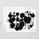 A post card with an abstract expressionist design consisting of big bold blots and thinner lines all fitting together with classical harmony.