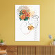 Abstract Face Line Art with Orange Flower Lips Canvas Print: