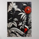 A imagem é um close-up de uma peça de arte em madeira. Ela é esculpida com um belo padrão floral. A obra de arte é em preto, branco e vermelho. O fundo da peça é preto, com desenhos em branco e vermelho. A peça lembra uma floresta tropical, com plantas e flores. Os detalhes intrincados da escultura chamam a atenção. This abstract floral print is a beautiful and unique piece of art that would look great in any home. The intricate details of the flowers and leaves are sure to catch the eye, and the bold colors will add a touch of vibrancy to your space. It is a great conversation starter and sure to become a cherished piece of art.