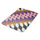A lively and colourful floral design with bold geometric shapes and playful symmetry. The mix of bright colours and abstract elements creates a fun and energetic look, full of movement and joy.
