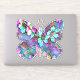 This is my original graphic art of a butterfly shaped floral pattern in an abstract artsy style sticker. The sticker is cut out in the butterfly shape with a thin white border. This sticker is about 8 inches by 8 inches due to the cut-out border, however you may change size to larger or smaller, if desired. The stickers are a quality product that will not leave a sticky goo on your things, and they are printed with inks that won’t fade. Put them on anything you want to personalise and decorate or give as a gift.