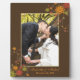 Elegant red, orange and green abstract flowers with a chocolate brown frame designed on custom Wedding Photo Plaques. Great gift for newlyweds or for couple on their anniversary! All the default text can be fully customised with your own wording. Feel free to change the fonts, sizes and colours of the text as well. (Matching Photo Canvas Prints & Christmas Photo Cards are also available in the store.
