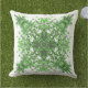 Abstract Floral Pattern In Black & Green On White Cushion