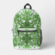 Backpack all over print cut sew style storage bag printed with Abstract Floral Pattern In Black & Green On White by TheFabricSeal print on demand shop at Zazzle.com #ZazzleMade ©️Original. https://www.zazzle.com/store/thefabricseal