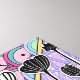 The image features an abstract floral pattern with various stylised flowers, set against a colourful geometric background divided into distinct sections with different shapes and colours, creating a striking contrast and visually engaging composition.