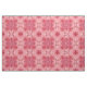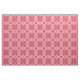 Fabric in a geometric pattern adapted from an image of flower petals, in soft shades of pastel to deep coral pink