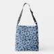 Abstract Flowers 031023 - White on Shibori Blue Crossbody Bag