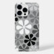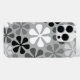 A fun and funky style abstract flower surface pattern design in black, white and greys.