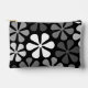 A fun and funky retro style abstract flower surface pattern design in white and greys on a black background.