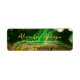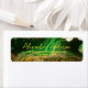 This super trendy personalized return address label design features your name and address on an emerald green abstract backdrop with faux gold foil elements. The text is completely editable. Use the Personalize option to make changes.