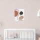 A lightly textured abstract design of freeform shapes and lines in a brown and black palette.
