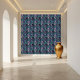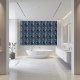 This tile features a mesmerising abstract geode pattern, reminiscent of natural agate slices. The design showcases a blend of deep blues, purples, and teals, accented with shimmering gold and crystal-like details. Perfect for adding a touch of natural elegance and modern artistry to any space.