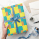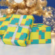 An originally designed abstract geometric pattern in lemon yellow, turquoise and orange.