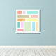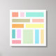 A minimalist modern abstract geometric art design of rectangular blocks in pastel colors on a light beige background.