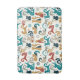 Geometric cats in a pleasing palette of turquoise and goldenrod on an off-white background.