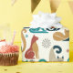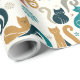 Geometric cats in a pleasing palette of turquoise and goldenrod on an off-white background.