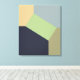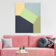 A modern minimalist abstract art design of rectangular geometric color blocks in blue, green and brown colors.