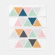 Trendy multi-coloured playful geometric harlequin style patterned fleece blanket in a modern contrasting palette of white, grey, navy, pink, mint green, orange, and dark grey charcoal.