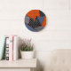 Abstract Geometric Composition: Orange Blue Patter Large Clock