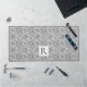 This exquisite desk mat is a piece of abstract art that can add a touch of elegance to any workspace. It features a mosaic of grey square tiles arranged in a mesmerising watercolor pattern. The contrasting shades of grey and white are artfully blended to create an arresting visual that will draw the eye and complement the monogram placed in a white frame. Not only does this desk mat provide a gorgeous aesthetic, it also offers a practical protective layer for your workspace.