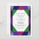 Abstract geometric jewel gemstone tones modern wedding invitation. This trendy contemporary wedding invite features triangles in jewel tones: navy blue, violet purple, ruby red, turquoise blue and emerald green.