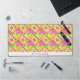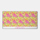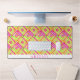 This eye-catching desk mat features an abstract geometric pattern made of magenta pink and chartreuse green square tiles. The focus of this design is the unique watercolor effect that is created by the colours which are blended together. To provide a touch of personalisation, there is a white band at the bottom of the mat with your name printed in the centre. This mat will be the ideal addition to any desk in need of a splash of colour and a unique look.