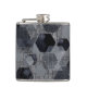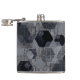 Abstract geometric textured pattern, black and grey background. Black, grey geometric shapes, honeycombs on a light grey striped background.