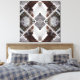 This striking abstract design blends urban architecture with natural elements in a mirrored geometric layout. Snow-covered tree branches intersect with blurred red brick buildings and windows, creating a dynamic kaleidoscopic effect. The muted tones of grey, brown, and white evoke a wintry cityscape, while the symmetry adds balance and modern sophistication.