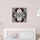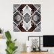 This striking abstract design blends urban architecture with natural elements in a mirrored geometric layout. Snow-covered tree branches intersect with blurred red brick buildings and windows, creating a dynamic kaleidoscopic effect. The muted tones of grey, brown, and white evoke a wintry cityscape, while the symmetry adds balance and modern sophistication.