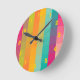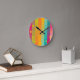 The clock did not take as long to arrive as I thought it might and was extremely well packaged. I didn't do the measurements so I didn't realize it is a little smaller than the average clock but that does not matter (just make sure you check if that's important to you).It is really nifty! It seems very solid and well made not flimsy at all. It has been going well and has kept good time in its few weeks on my wall. Nice product. Gets noticed too! Nicer in real life than the picture but true to the picture