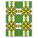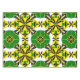 Vibrant geometric design features bold colourful shapes with symmetrical floral motifs, offering a lively and artistic touch.