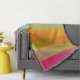 A quality printed throw has its advantages. This is a much finer weave throw than its loopier cousins, and though lighter, it is worth the investment for custom room accessorizing. The back is much prettier than the typical brown, and the fringe on the long sides very vivid, the selvage nicely done. Before photographing, I washed the throw in cold water, delicate, with a thicker woven throw the same size. On tumble dry low, this throw was dry in half the time as the other. This is a very practical quality if you use throws for furniture covers or to wrap up in frequently. The sleekness of the fabric makes it a great layer for accenting or protecting without the feeling of sitting on too much stuff. Perfect for napping or when you feel a light chill coming on. The color printing is beautiful and on this fabric, matched the design and color of my Photoshop image. This is an advantage for blending room fabrics and colors. The fringe on the short sides prints the colors from the design image and therefore varies from the side fringe. I streaked a white fractal line through the plaid pattern to give the illusion of weaving. This printed as crisp as an illusory thread, and put some white in the short side fringe, showing another advantage of print vs loomed- for artistic purposes, line lines, detail, and color integrity can be planned and preserved. My loomed throws have color limitations and more of a needlepoint texture. Print throws reproduce an exact image. The throw felt a little stiff straight out of the package, but this went away in the first delicate wash. Of course I searched the wash water for ink or bleeding and there was none.