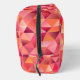 Modern, monogrammed backpack featuring a fun and cool abstract geometric pattern of wavy triangles in shades of red, orange, pink and yellow gold personalised with a monogram in your choice of font styles and colours or delete the monogram and frame if not desired in EDIT. ASSISTANCE: For help with personalisation or if you would like coordinating items, contact the designer BEFORE ORDERING via the Zazzle Chat MESSAGE tab or email makeitaboutyoustore@gmail.com.