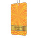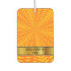 This vibrant, eyecatching air freshener design features an orange and yellow abstract sun-like pattern. It also features a personalised name or message within a faux gold appearance banner.