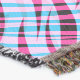A quality printed throw has its advantages. This is a much finer weave throw than its loopier cousins, and though lighter, it is worth the investment for custom room accessorizing. The back is much prettier than the typical brown, and the fringe on the long sides very vivid, the selvage nicely done. Before photographing, I washed the throw in cold water, delicate, with a thicker woven throw the same size. On tumble dry low, this throw was dry in half the time as the other. This is a very practical quality if you use throws for furniture covers or to wrap up in frequently. The sleekness of the fabric makes it a great layer for accenting or protecting without the feeling of sitting on too much stuff. Perfect for napping or when you feel a light chill coming on. The color printing is beautiful and on this fabric, matched the design and color of my Photoshop image. This is an advantage for blending room fabrics and colors. The fringe on the short sides prints the colors from the design image and therefore varies from the side fringe. I streaked a white fractal line through the plaid pattern to give the illusion of weaving. This printed as crisp as an illusory thread, and put some white in the short side fringe, showing another advantage of print vs loomed- for artistic purposes, line lines, detail, and color integrity can be planned and preserved. My loomed throws have color limitations and more of a needlepoint texture. Print throws reproduce an exact image. The throw felt a little stiff straight out of the package, but this went away in the first delicate wash. Of course I searched the wash water for ink or bleeding and there was none.