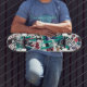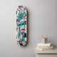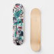 This skateboard design features a vibrant mix of graffiti-inspired geometric shapes and expressive brushstrokes in teal, red, and black on a clean white background. The layered, chaotic elements and abstract symbols create a striking visual that blends urban energy with a modern art vibe. Ideal for skaters who love unique and artistic decks, this design embodies both creativity and street style, making it a perfect choice for those who want to stand out with a dynamic and edgy look.