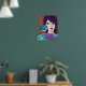 Cute abstract art poster with a girl and her bird in teal and purple abstract ai art.