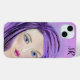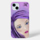 Features an abstract pastel art drawing of a girl with purple hair. Personalize with your initials.