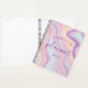 A modern and girly personalised planner. The design features a purple, pink, blue, and yellow abstract iridescent holographic background. Customise with your own text, name, and year.