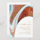 This wedding design set, with it's abstract pattern of flowing ripples and veins of glittering gold, brings to mind eye-catching rock formations and Southwestern landscapes. A colourful palette in shades from rust, and terra cotta through sky blue adds to the appeal. The Bridal Shower invitation shown here has all the above on a white background with a template to easily add your event details. Search ID903 to see other colour choices and coordinating pieces for this unique wedding collection.