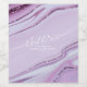 This wedding design set, with it's abstract pattern of flowing ripples and veins of glittering plum, brings to mind eye-catching rock formations and sparkling gems. The striking colour palette in shades from lilac and lavender to soft periwinkle adds to the appeal. The wine label shown here has all the above on a lilac background with a template to easily add a message, names and wedding date. Search ID903 to see other colour choices and coordinating pieces for this unique wedding collection.