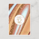 This wedding design set, with it's abstract pattern of flowing ripples and veins of glittering gold, brings to mind eye-catching rock formations and Southwestern landscapes. A colourful palette in shades from rust, and terra cotta through sky blue adds to the appeal. The coordinating table number card shown here has all the above with a white label to add your table numbers. Easily add your names, numbers and wedding date using the provided template. Search ID903 to see other colour choices and coordinating pieces for this unique wedding collection.