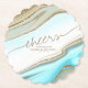 This design set, with it's abstract pattern of flowing ripples and veins of glittering gold, brings to mind eye-catching rock formations, flowing sand dunes, and gentle ocean waves. The striking colours of sea and sand for this set adds to the appeal. The coordinating paper coaster shown here has an abstract background holding optional text of 'Cheers to the happy couple' along with your names and wedding date. Search ID903 to see other colour choices and coordinating pieces for this unique wedding collection.