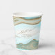 This design set, with it's abstract pattern of flowing ripples and veins of glittering gold, brings to mind eye-catching rock formations, flowing sand dunes, and gentle ocean waves. The striking colors of sea and sand for this set adds to the appeal. The coordinating paper cup shown here has an abstract background holding optional text of 'Cheers to the happy couple' along with your names and wedding date. Search ID903 to see other color choices and coordinating pieces for this unique wedding collection.