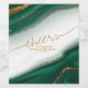 This wedding design set, with it's abstract pattern of flowing ripples and veins of glittering gold, brings to mind eye-catching rock formations and sparkling gems. The jewel-toned colour palette in shades of emerald green adds to the appeal. The wine label shown here has all the above with template to easily add a message, names and wedding date. Search ID903 to see other colour choices and coordinating pieces for this unique wedding collection.